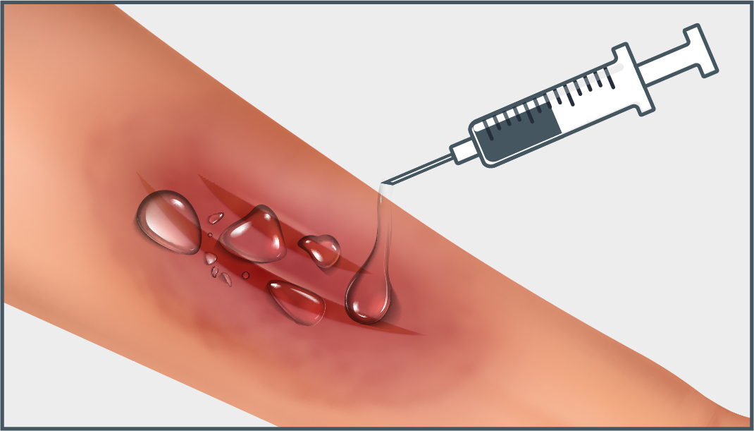 Dosis: 0,5 - 1 mL / 1 cm2 luka.